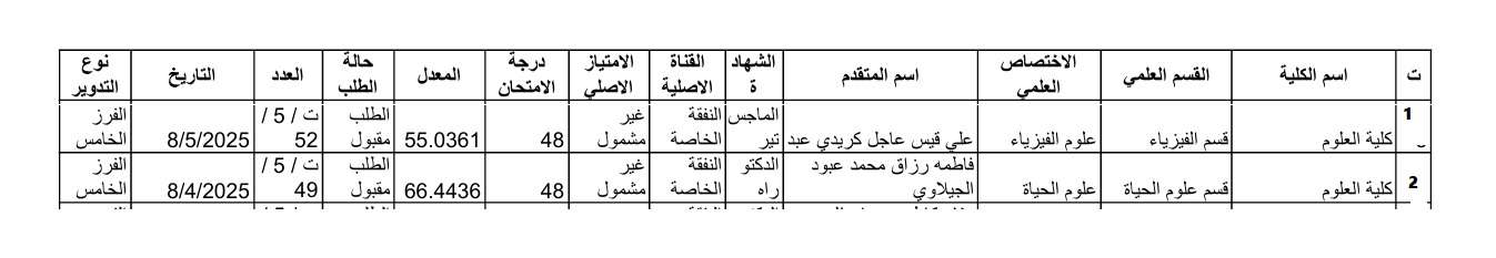 تعلن كلية العلوم في جامعة كربلاء عن صدور نتائج الفرز الخامس للقبول في برامج الدراسات العليا للعام الدراسي 2025–2026.