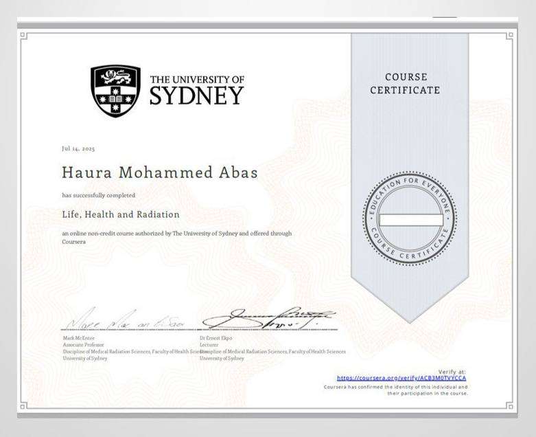 شاركت ألاستاذ المساعد الدكتورة حوراء محمد عباس، عضو الهيئة التدريسية بقسم علوم الفيزياء في كلية العلوم بجامعة كربلاء ، في دورة تدريبية متقدمة بعنوان “Life, Health and Radiation”، أقيمت في جامعة سيدني – أستراليا ضمن فعاليات التعليم المستمر والتطوير المهني الدولي.