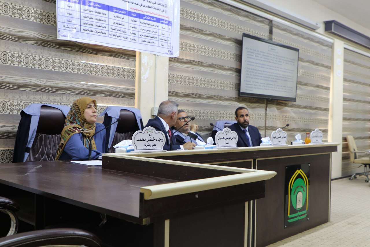 ناقشت كلية العلوم في جامعة كربلاء رسالة ماجستير للطالب مصطفى رحمان محمد من قسم علوم الفيزياء، تناولت تأثير الغازات السامة (CO, H₂S, NO) في الخصائص التركيبية والإلكترونية والطيفية للفسفورين أحادي الطبقة المطعّم بالبورون والألمنيوم باستخدام طريقة DFT.