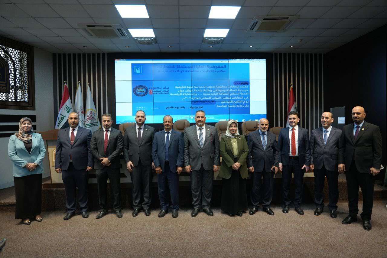 احتضنت جامعة كربلاء ندوة تثقيفية عن اهمية استلام البطاقة البايومترية والمشاركة الواسعة في انتخابات مجلس النواب 2025.