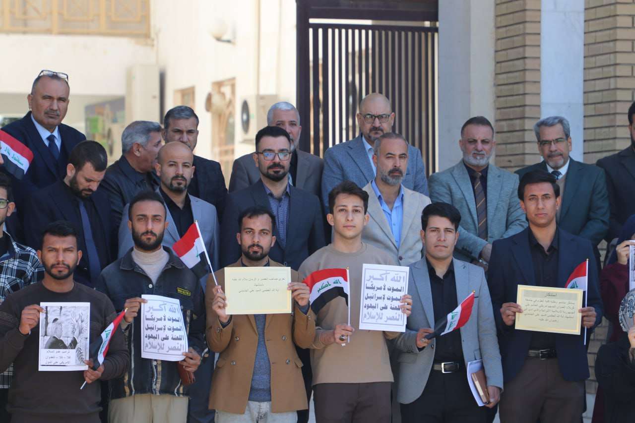 وكان في مقدمة الحضور عميد الكلية والمعاونين الإداري و العلمي هذا إلى جانب رؤساء الأقسام العلمية وأعضاء الهيأة التدريسية والموظفين والطلبة، إذ عبر الحاضرون عن رفضهم للاعتداءات المتواصلة من الجانب الامريكي/ الصهيوني على أمن شعوب المنطقة واستقرارها مؤكدين في الوقت نفسه تضامنهم مع الشعب الايراني في دفاعه عن ارضه.