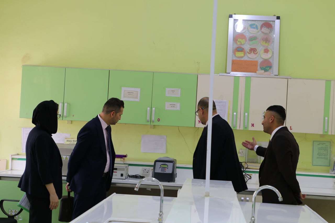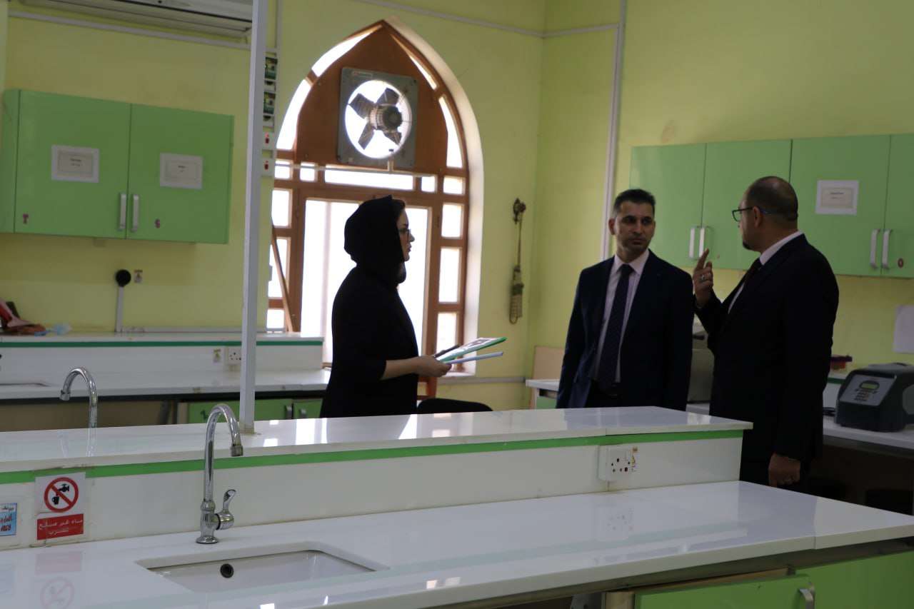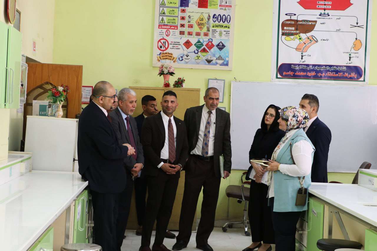 The Dean of the College of Science, Professor Dr. Hassan Jameel Jawad, along with his assistants and the Head of the Department of Biology, received a ministerial committee formed by the Ministry of Higher Education and Scientific Research to explore the possibility of establishing a Microbiology Branch at the college.