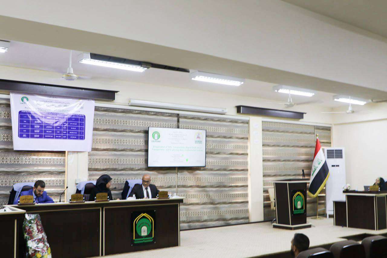 The faculty of Science at the University of Kerbala examined a Master’s thesis presented by (Muna Hassan Hamza) from the Department of Physics, which focused on the preparation of titanium dioxide (TiO₂) nanoparticles doped with silver nanoparticles and the assessment of their antibacterial activity. The study aimed to synthesize nanostructures of pure and silver-doped TiO₂ with varying concentrations using the hydrothermal technique, as well as to examine the factors influencing their structural dimensions. The research also tested the antibacterial activity of these nanostructures against Gram-positive and Gram-negative bacteria. Findings revealed that variations in fabrication parameters directly affected the morphology and size of the nanoparticles, which in turn influenced their antibacterial performance. Furthermore, doping with silver at concentrations of 1%, 1.5%, and 2% led to reduced particle size and significantly enhanced antibacterial activity. The silver-doped samples demonstrated notable effectiveness against E. coli, S. aureus, and S. mutans. The thesis concluded that silver-doped TiO₂ nanoparticles possess high antibacterial potential, making them promising candidates for medical and biological applications. The recommendations highlighted the need for further investigation into the effect of thermal processing conditions, such as temperature and duration, on the biological activity of the nanoparticles, in addition to exploring other physical and chemical fabrication methods to further enhance antibacterial efficiency.