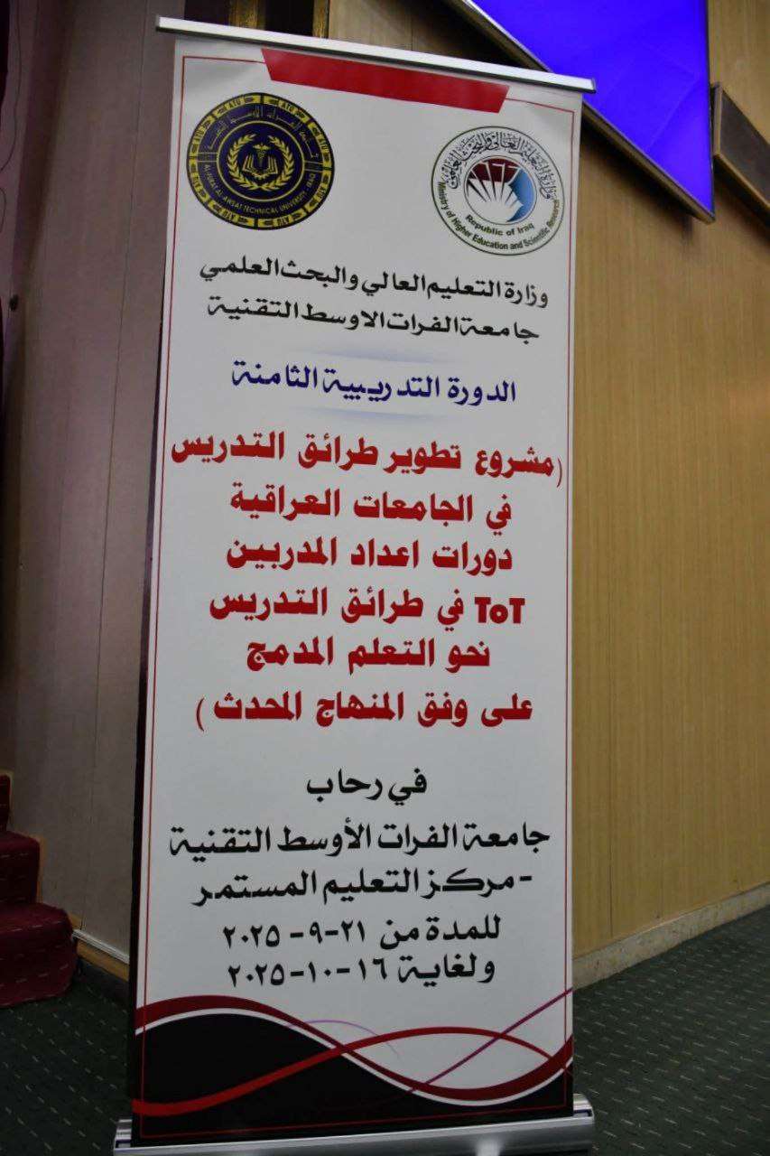 Assistant Professor Dr. Ihsan Mahdi Shaheed and Assistant Professor Dr. Zina Thamer Abdul-Hussein, faculty members at the faculty of Science, University of Kerbala, participated in the Eighth Ministerial Training of Trainers (TOT) Program on teaching methods for blended learning, organized by the Ministry of Higher Education and Scientific Research in cooperation with Al-Furat Al-Awsat Technical University.