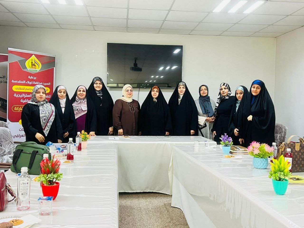 Under the patronage of the Governor of Kerbala, Eng. Nassif Jassem Al-Khattabi, and in implementation of the Strategic Plan for Iraqi Women within the Participation Axis, the Department of Women, Family, and Children, in collaboration with the Ministry of Higher Education and Scientific Research, organized a training workshop entitled “Training Candidates for the 2025 Iraqi Parliamentary Elections” at the Human Rights Hall in Kerbala.