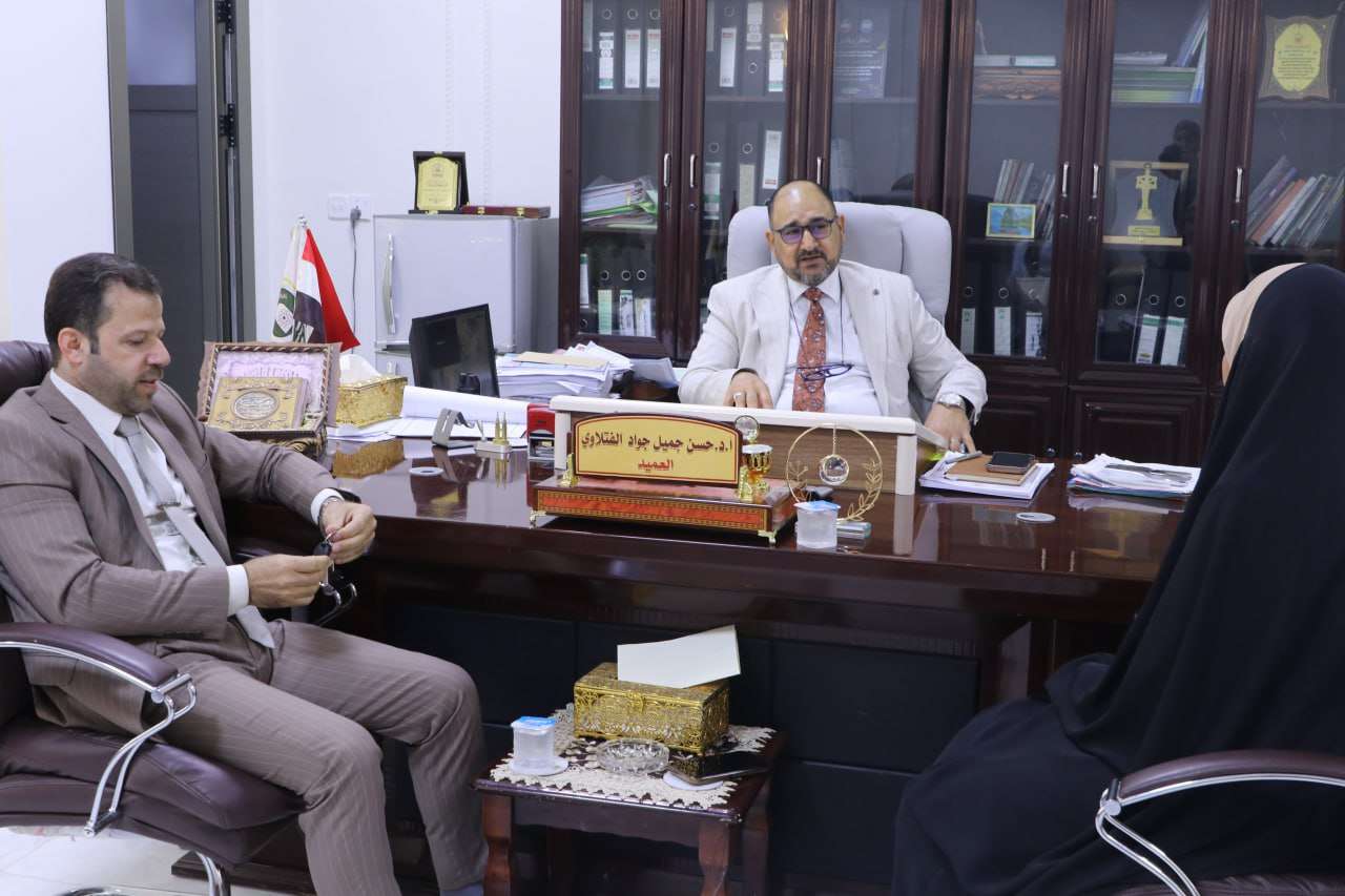 The University Guidance Division at the University Presidency of Kerbala, headed by Dr. Marwa Mahdi Kazem and comprising members Asst. Prof. Dr. Zahraa Shaker Nooni and Asst. Lecturer Haider Kazem Abdul, conducted a field visit to the University Guidance Unit at the College of Science.